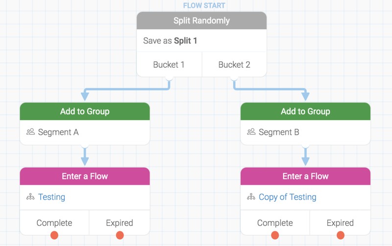 🔀 Use the Split Randomly action to divide your contacts into randomized groups (or “buckets”). This lets you test two or more message versions, surveys, or flow pathways — perfect for finding what works best.